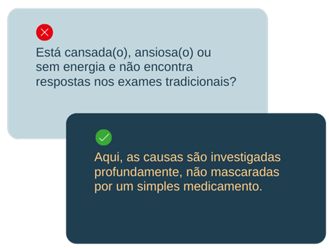 Você não precisa adiar o cuidado com a sua saúde. Cada passo dado hoje evita meses de cansaço, dúvidas e tentativas sem resultado.