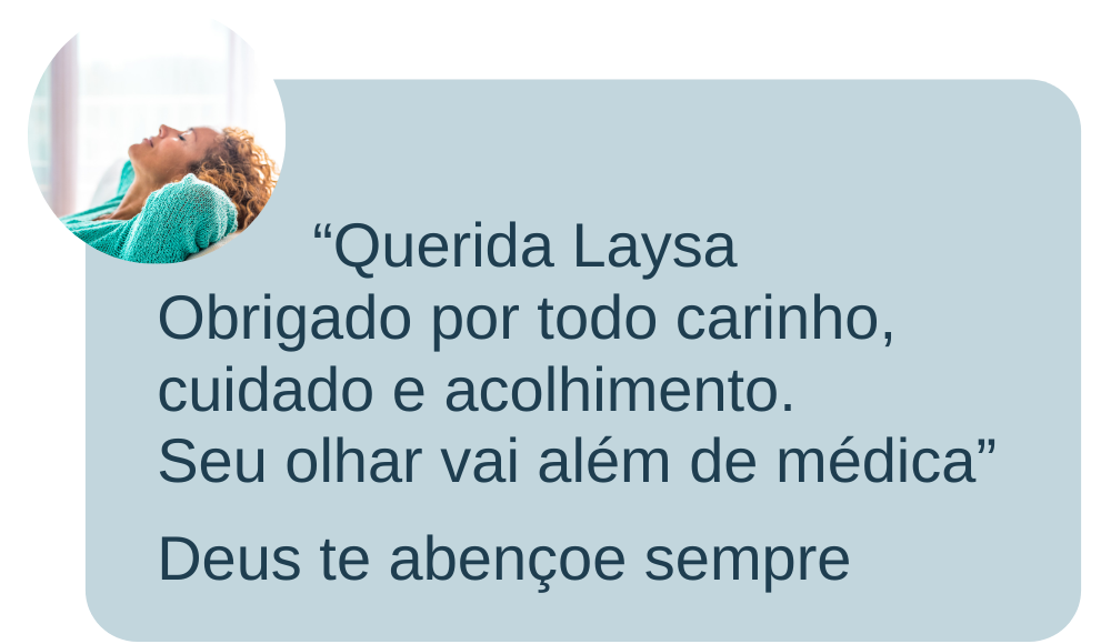 A primeira consulta com a Dra. Laysa é profunda, acolhedora e investigativa.